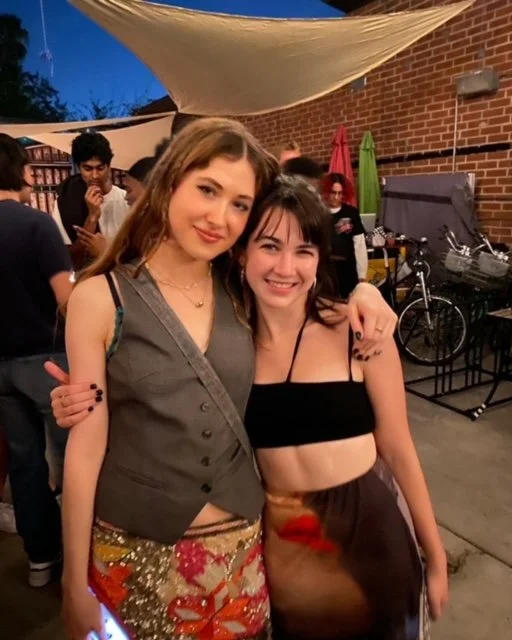 Lana Fleischli and Claire Sand in front of the Maya Hawke ice cream truck that stopped at Spoke Cafe to promote new single “Sweet Tooth!”