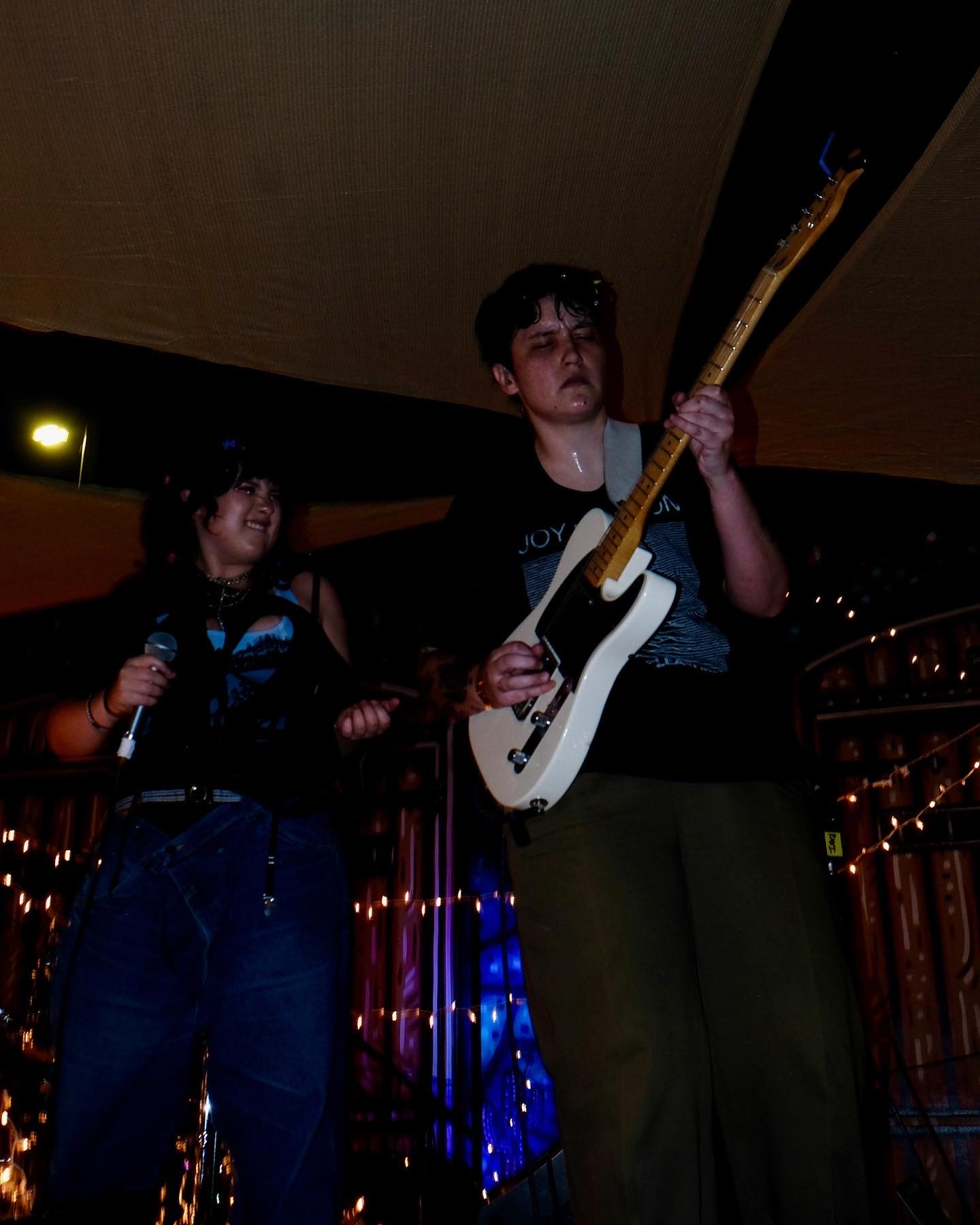 At this point, we had released the show on DICE (a platform for selling concert tickets). I was doing everything in my power to promote this show. I went and printed 50 flyers of the show poster and drove around for days with friends to hang them up in countless places. I made funny TikToks to get people’s attention. I even got my friend Dahlia, a wonderful photographer, to take pictures of my friends and I wearing my merch. I had a great time promoting the show. It was invigorating.